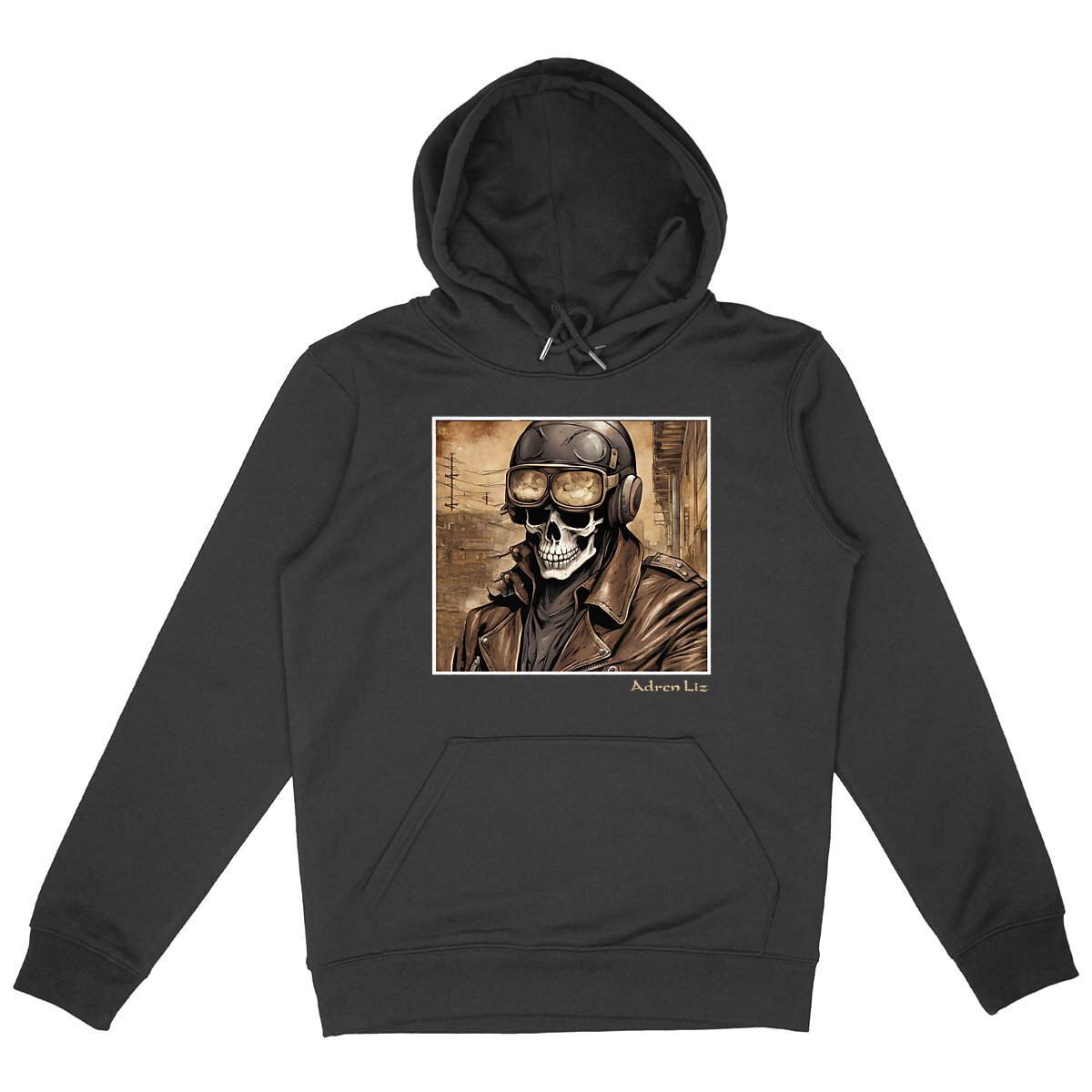 Sweat à capuche modèle Adren Liz Skull. Sweat unisexe : il conviendra aux hommes comme aux femmes. Produit fabriqué de manière équitable dispose des labels Eve Vegan et G.O.T.S. Sweat épais de haute qualité.