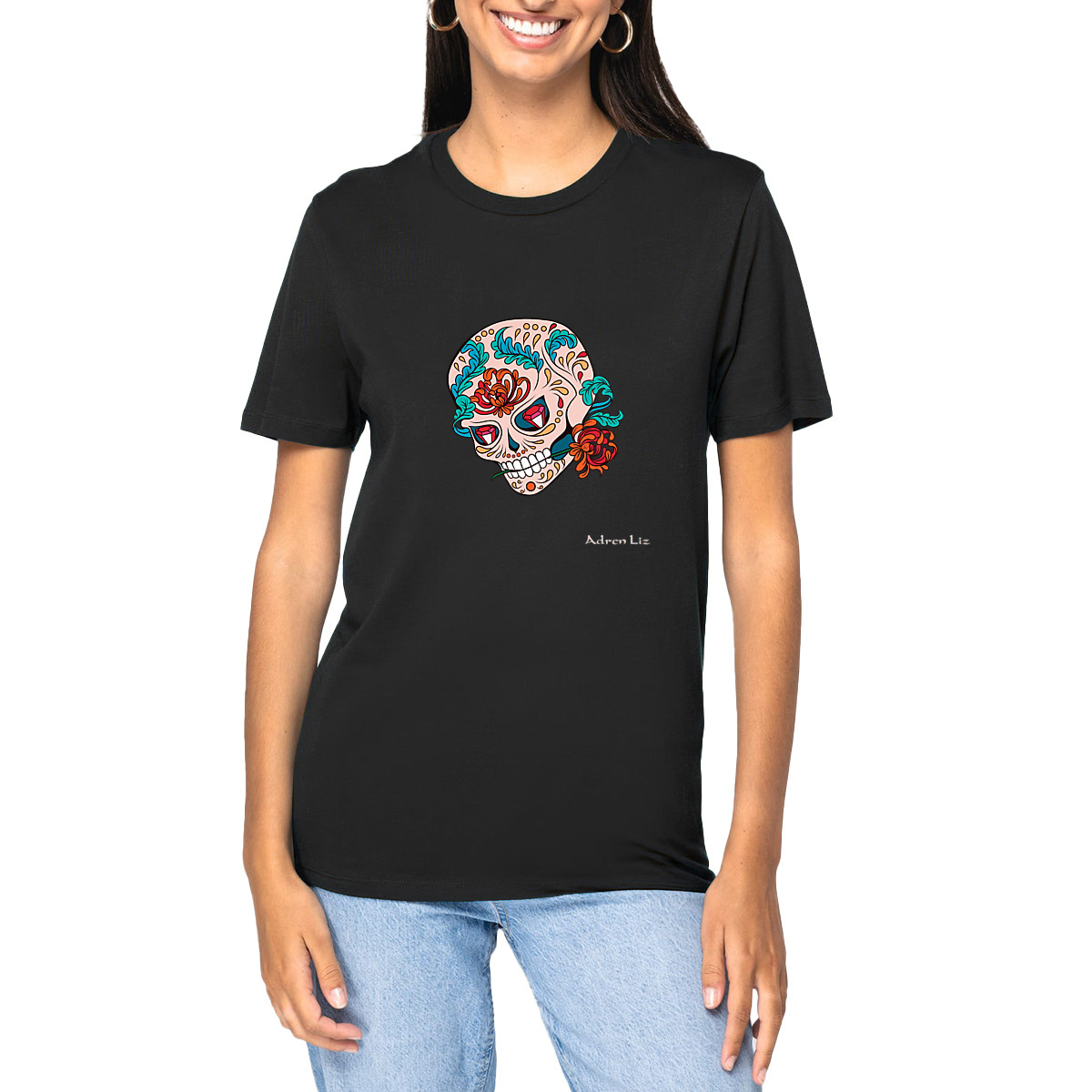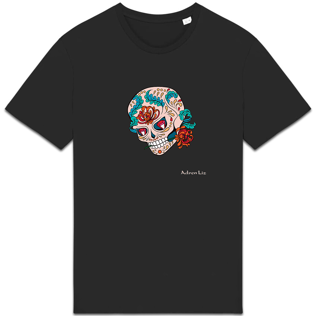 T-shirt modèle Adren Liz Skull & Roses Bio. Ce t-shirt 100% coton bio est unisexe : il conviendra aux hommes comme aux femmes. T-shirt fabriqué de manière équitable dispose des labels Eve Vegan et G.O.T.S. T-shirt épais de haute qualité.